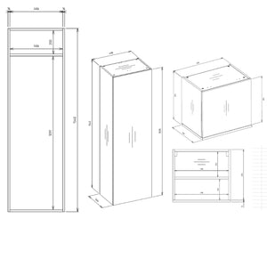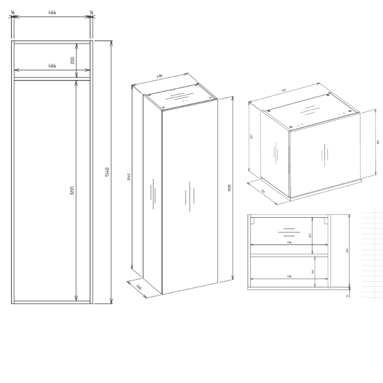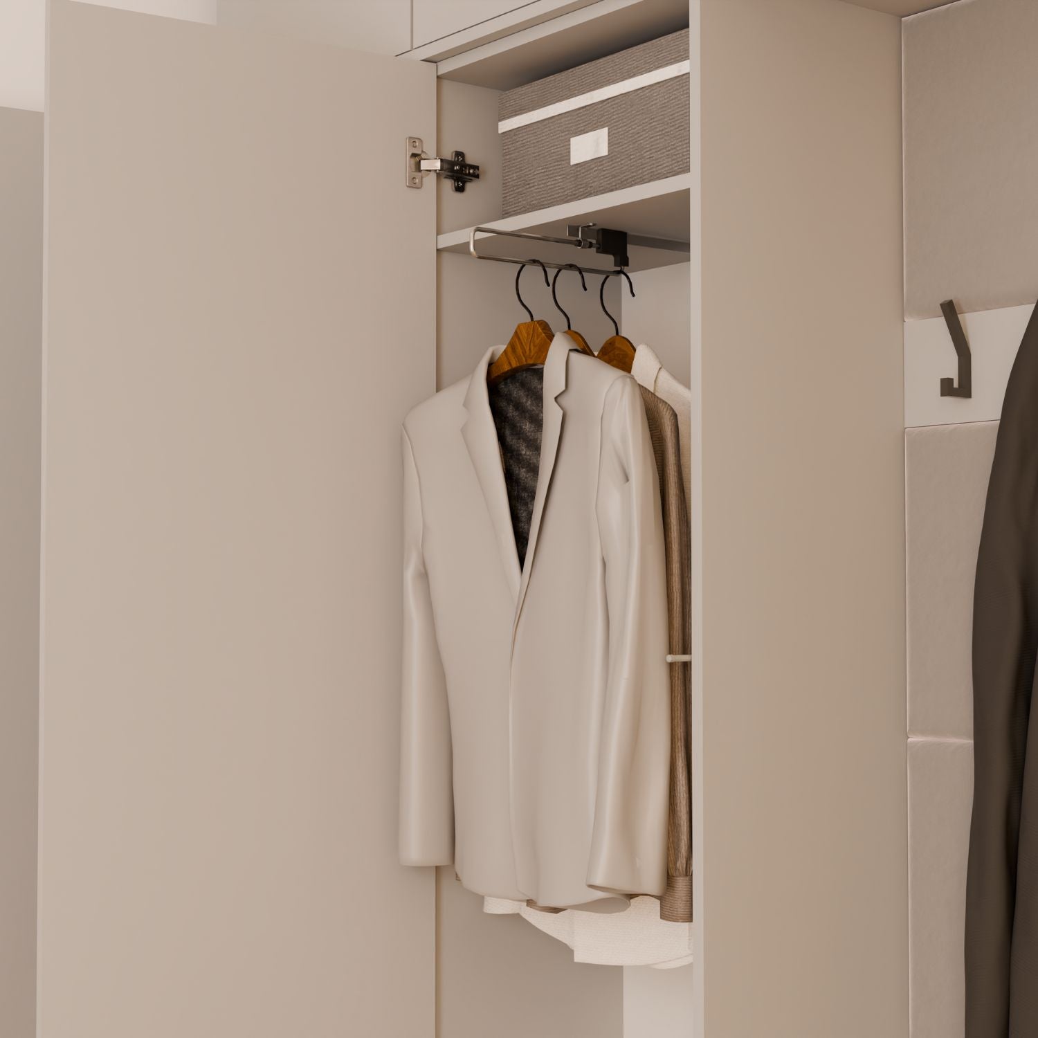 Mittlerer Schrank: Höhe 154 cm – Hauptgarderobe mit Kleiderstange und Ablage (20 cm)