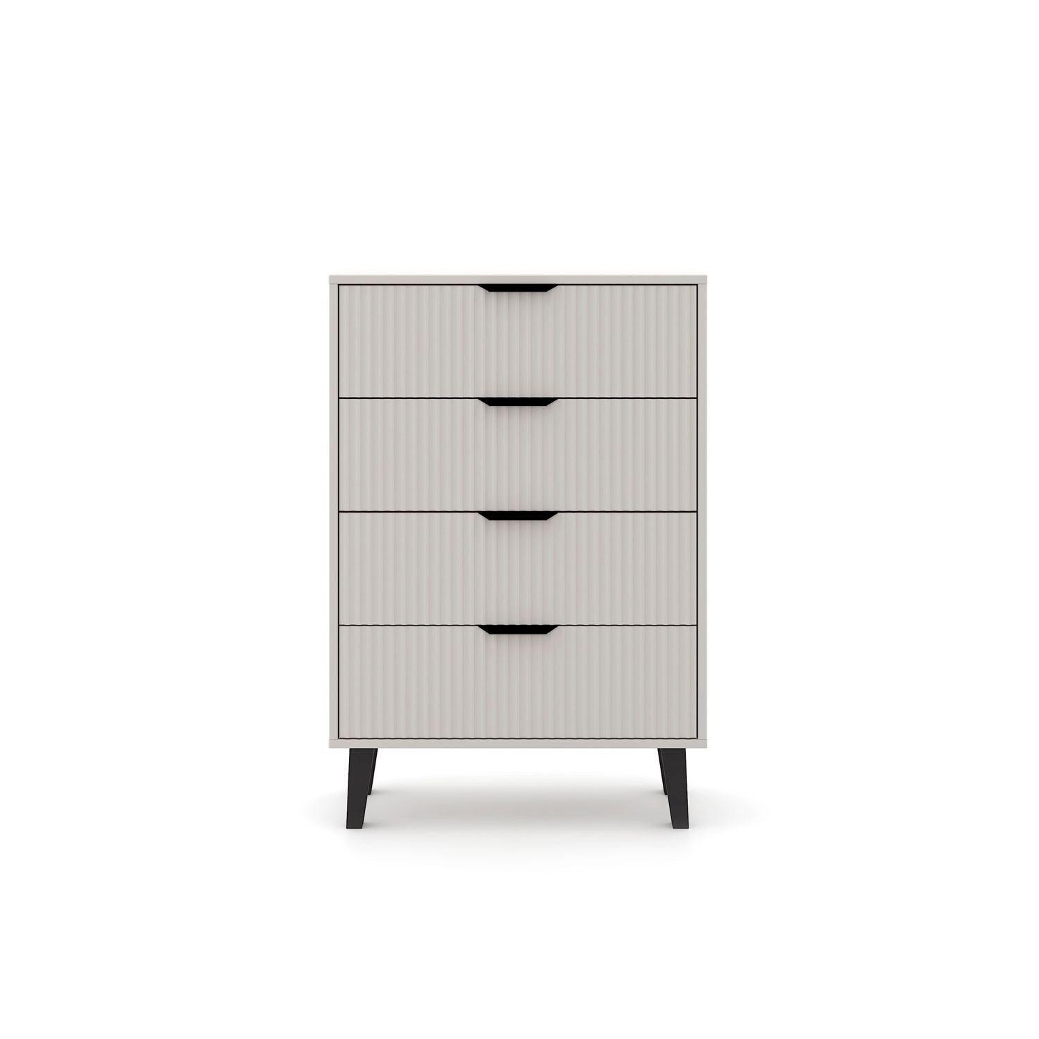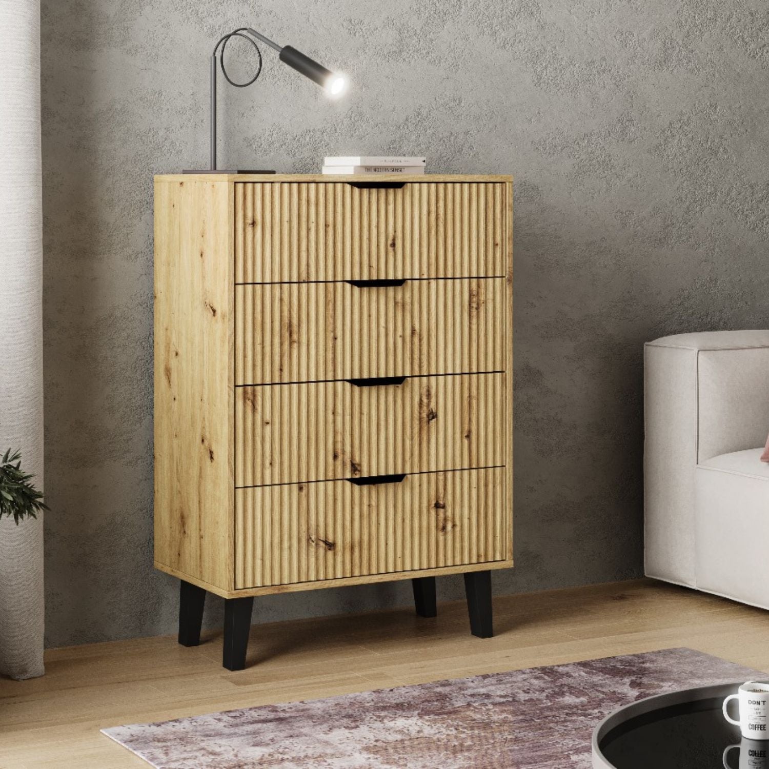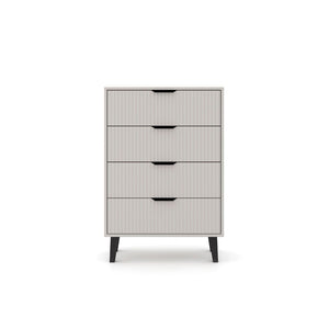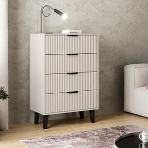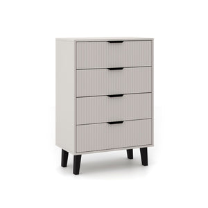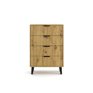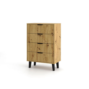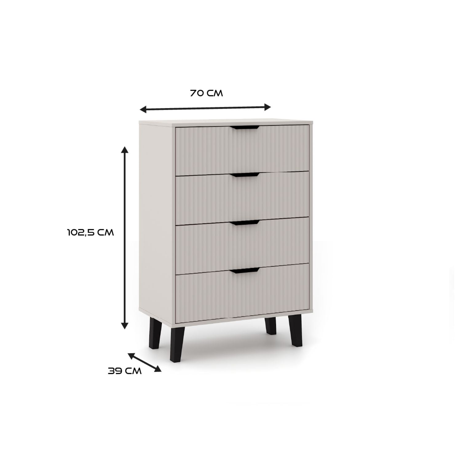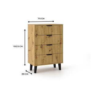Mit ihrem kompakten Format eignet sich die Kommode perfekt für Schlafzimmer, Wohnzimmer, Flur oder Jugendzimmer. Vier großzügige Schubladen bieten ausreichend Platz für Kleidung, Accessoires, Unterlagen oder Alltagsgegenstände und sorgen für stilvolle Ordnung in jedem Raum.