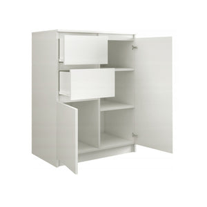 Die Kommode Kelly kombiniert modernes Design mit hoher Funktionalität: 2 Türen, 2 Schubladen und eine Auswahl an drei zeitlosen Farben machen sie zum idealen Möbelstück für jeden Wohnraum. Hochwertige Materialien, griffloses Design und ein gut strukturierter Innenraum sorgen für Alltagstauglichkeit und Stil.