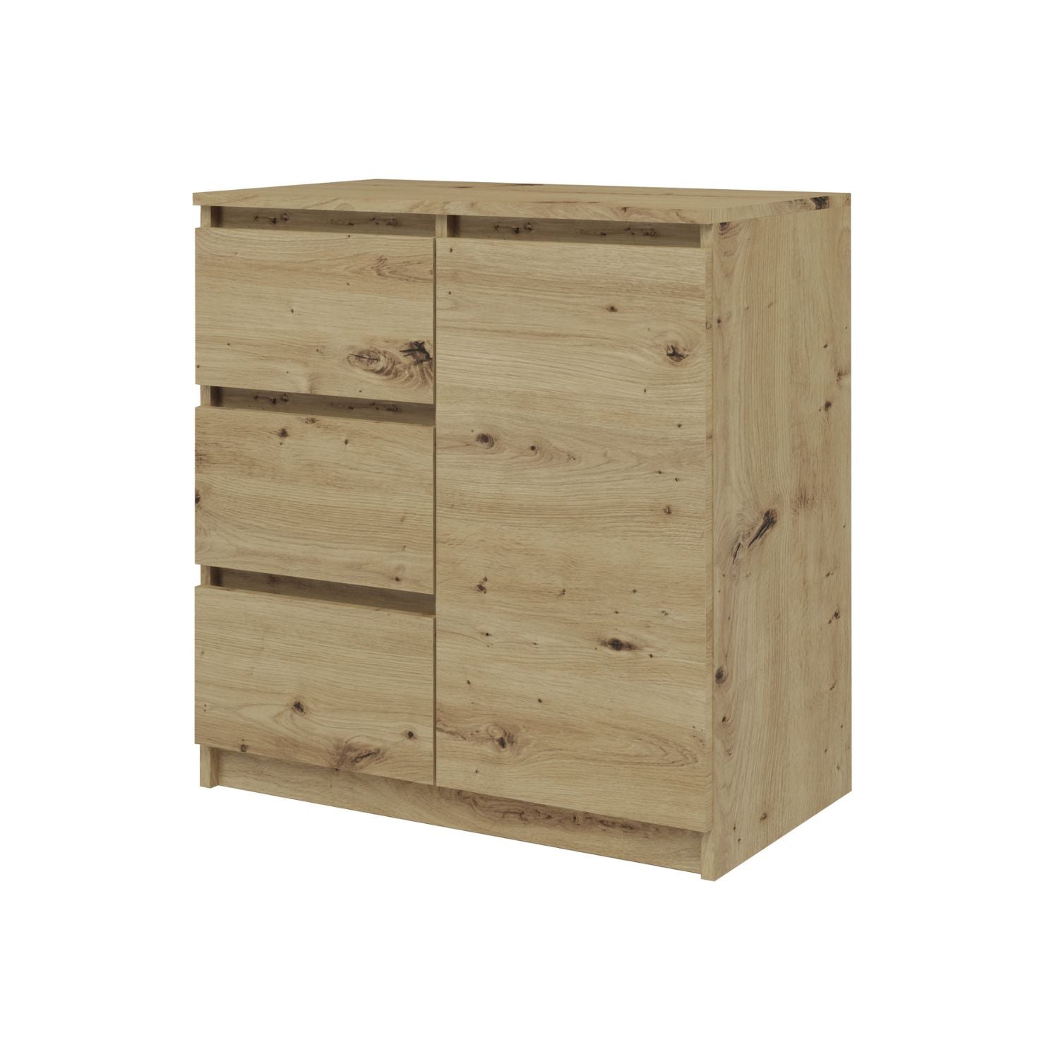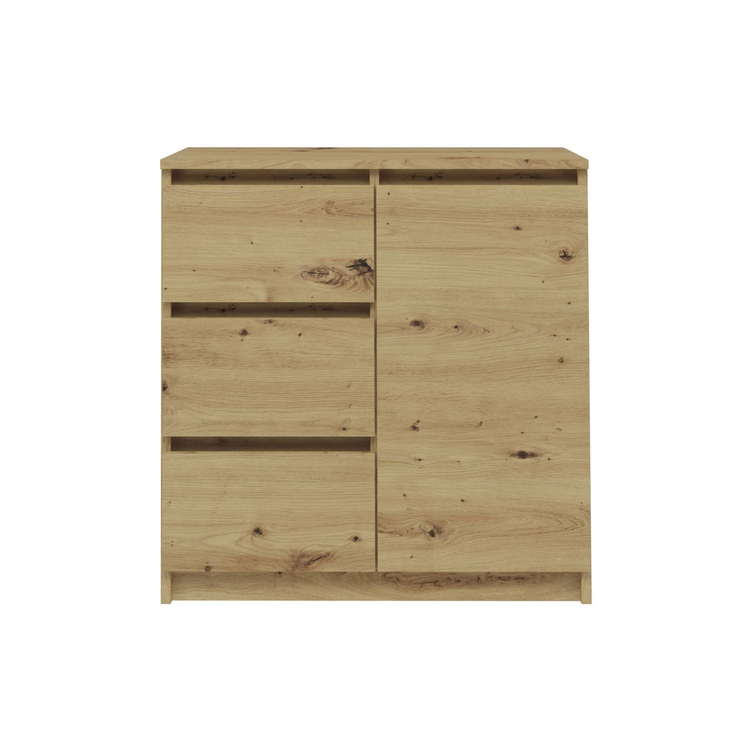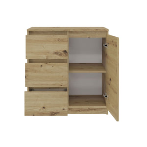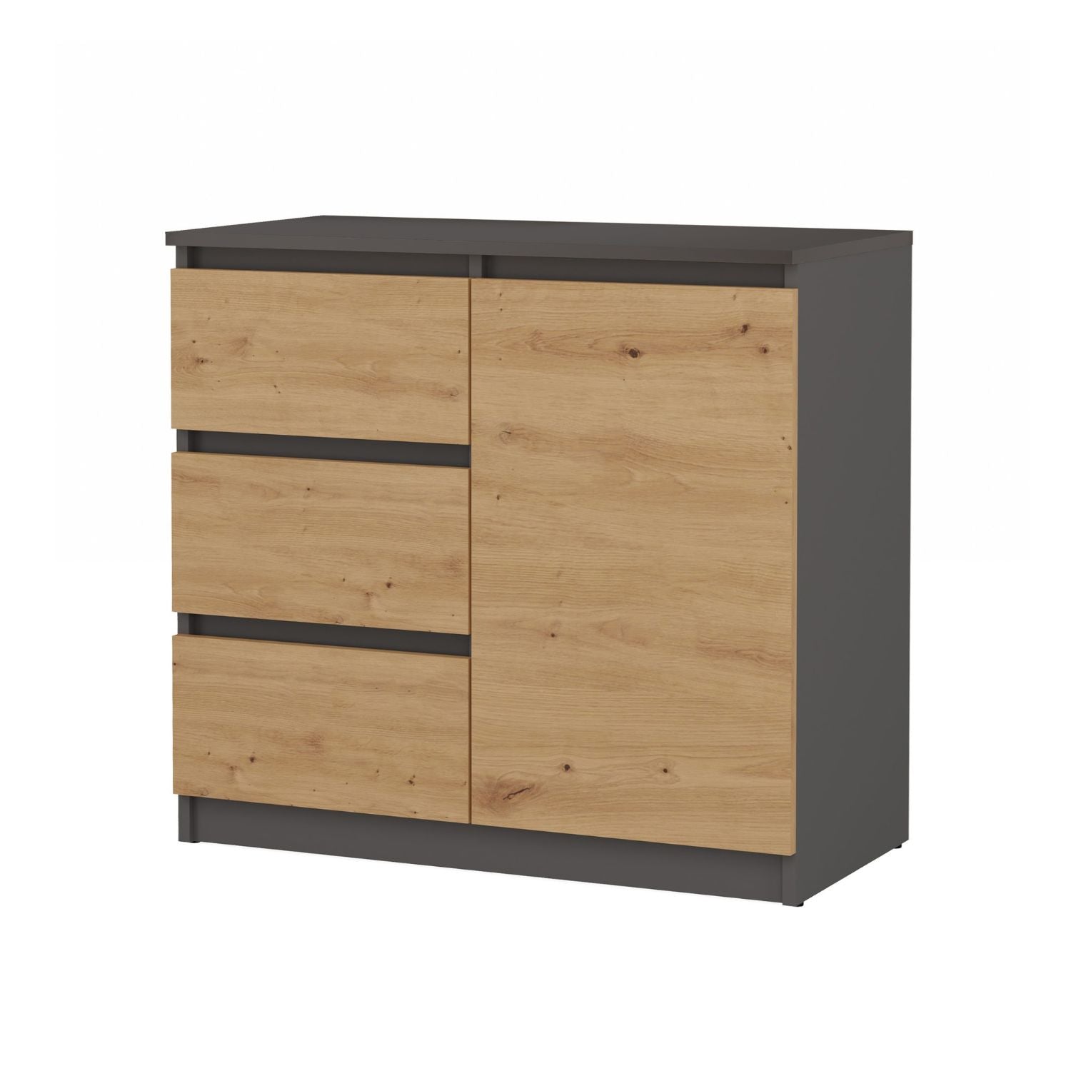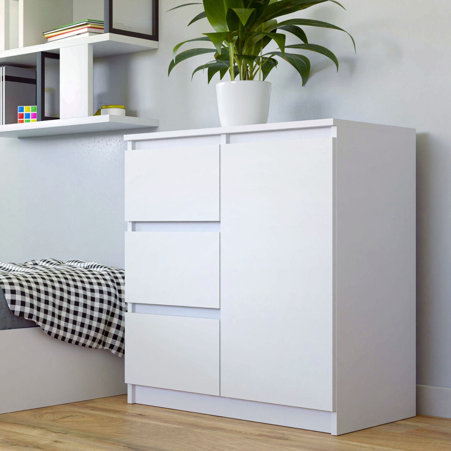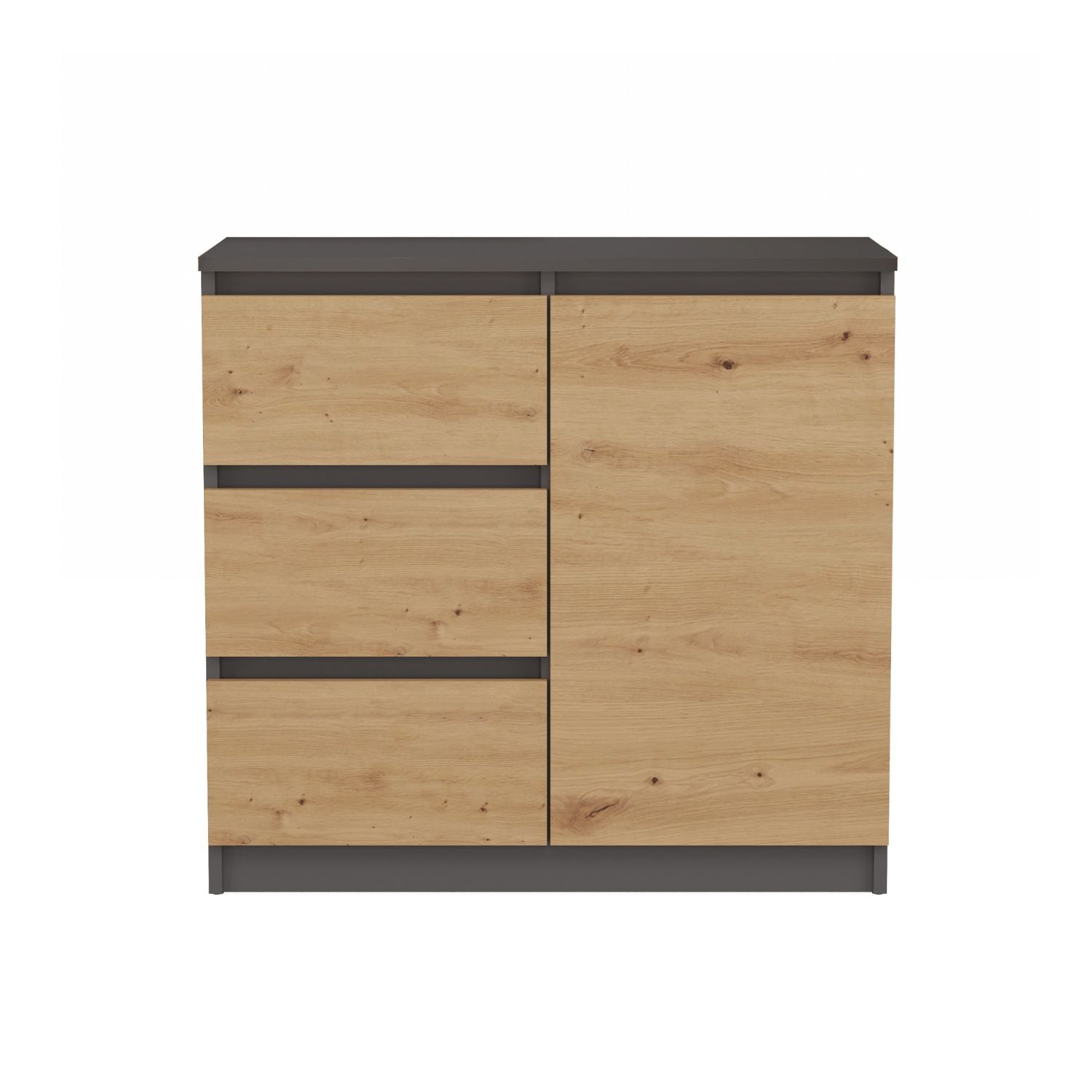 Die Kommode Milo vereint moderne Linienführung, zeitlose Eleganz und funktionale Aufteilung in einem vielseitigen Möbelstück. Mit einer Kombination aus einer Tür und drei geräumigen Schubladen bietet sie ausreichend Stauraum für Kleidung, Dokumente, Accessoires oder Alltagsgegenstände – perfekt für Schlafzimmer, Wohnzimmer, Flur oder Kinderzimmer.