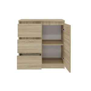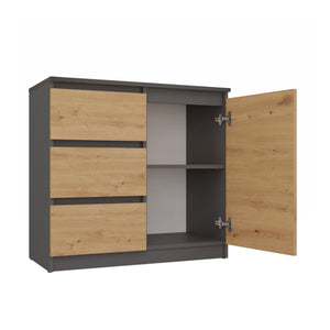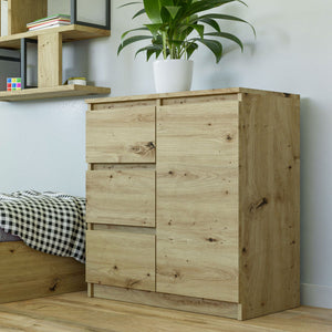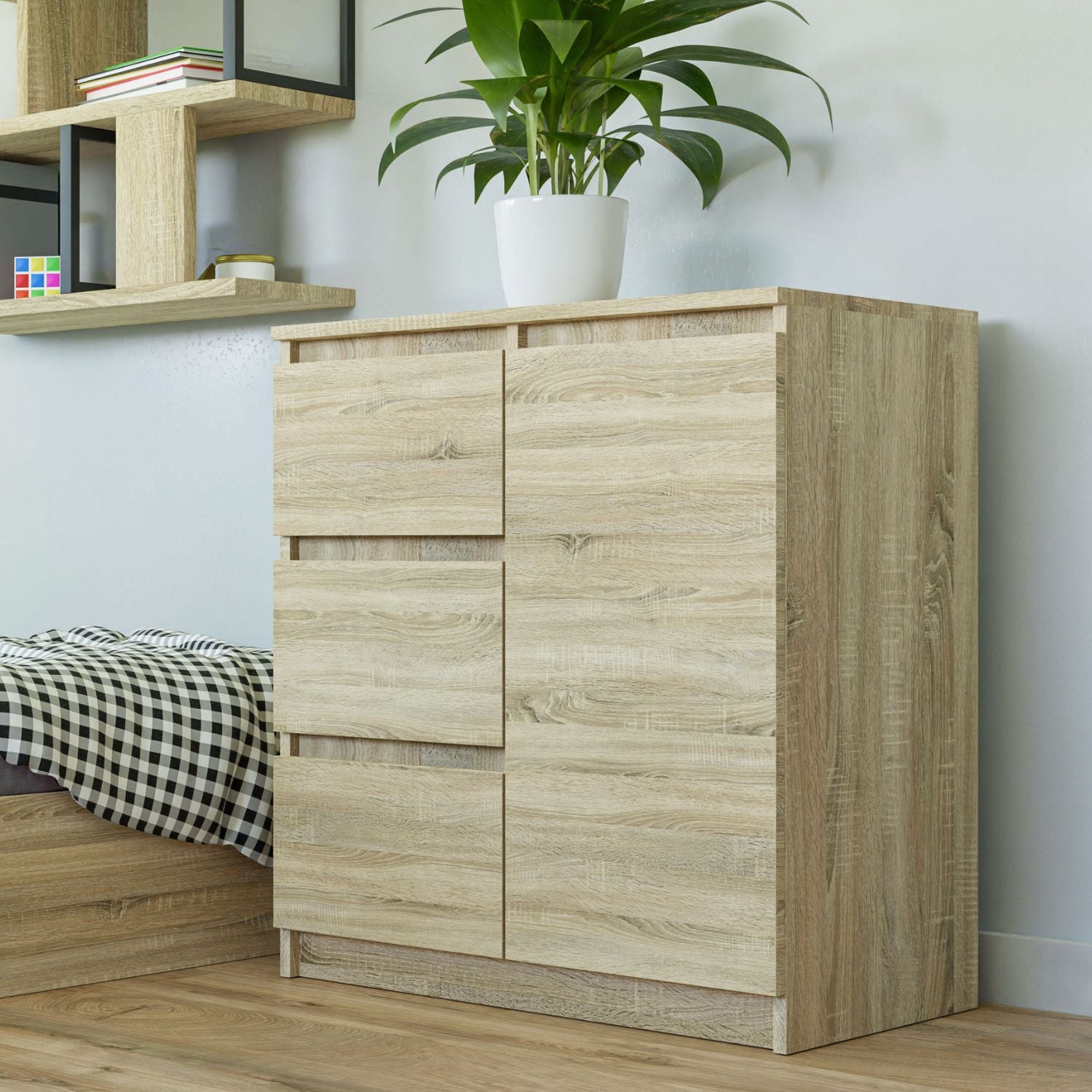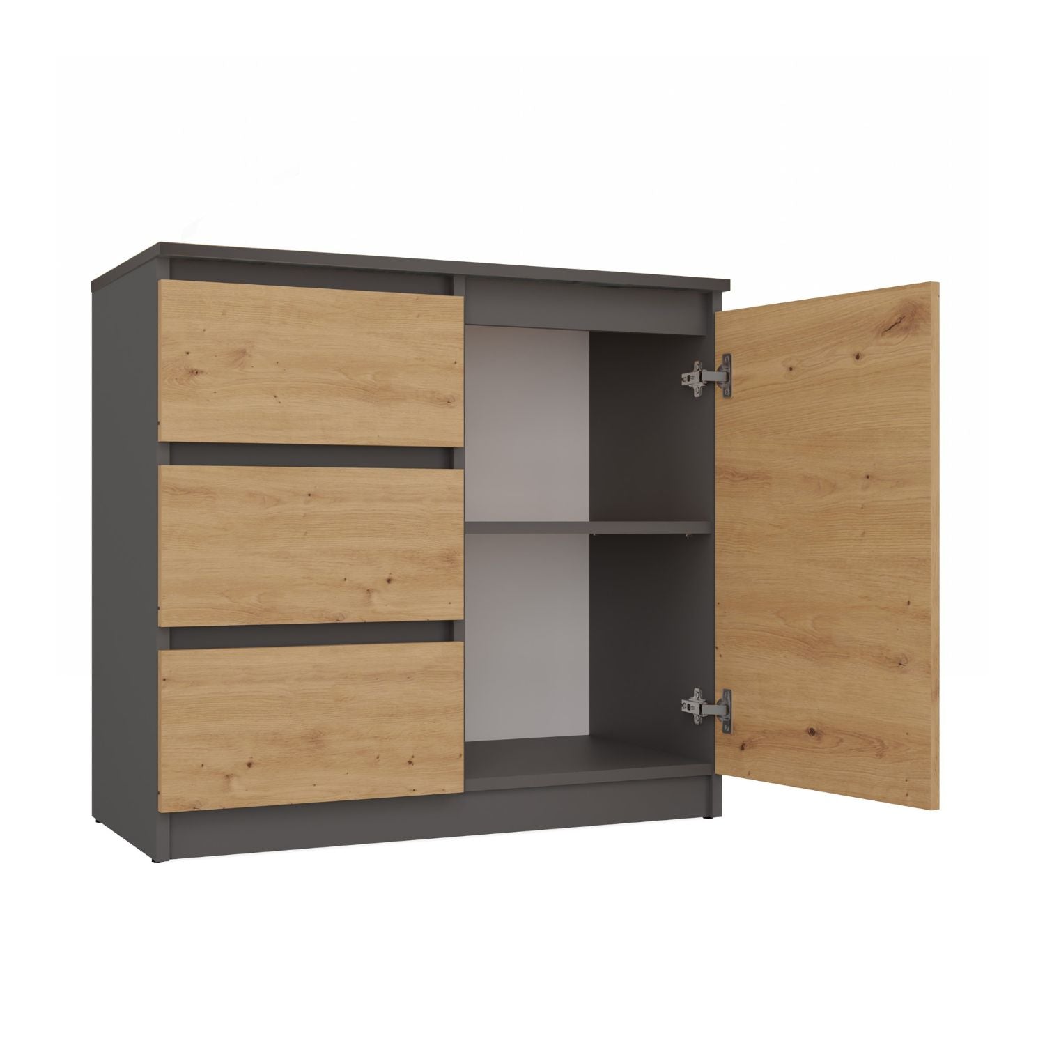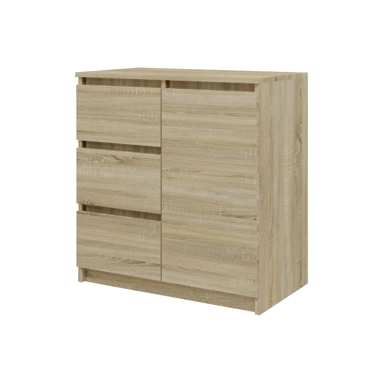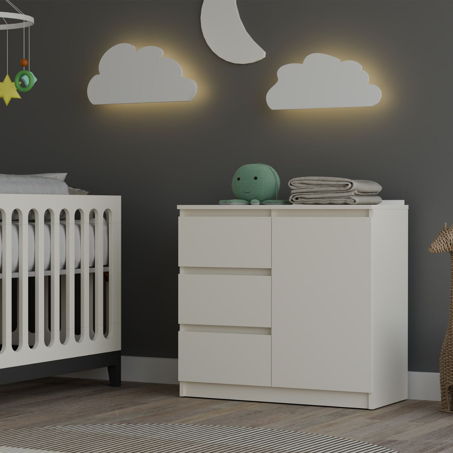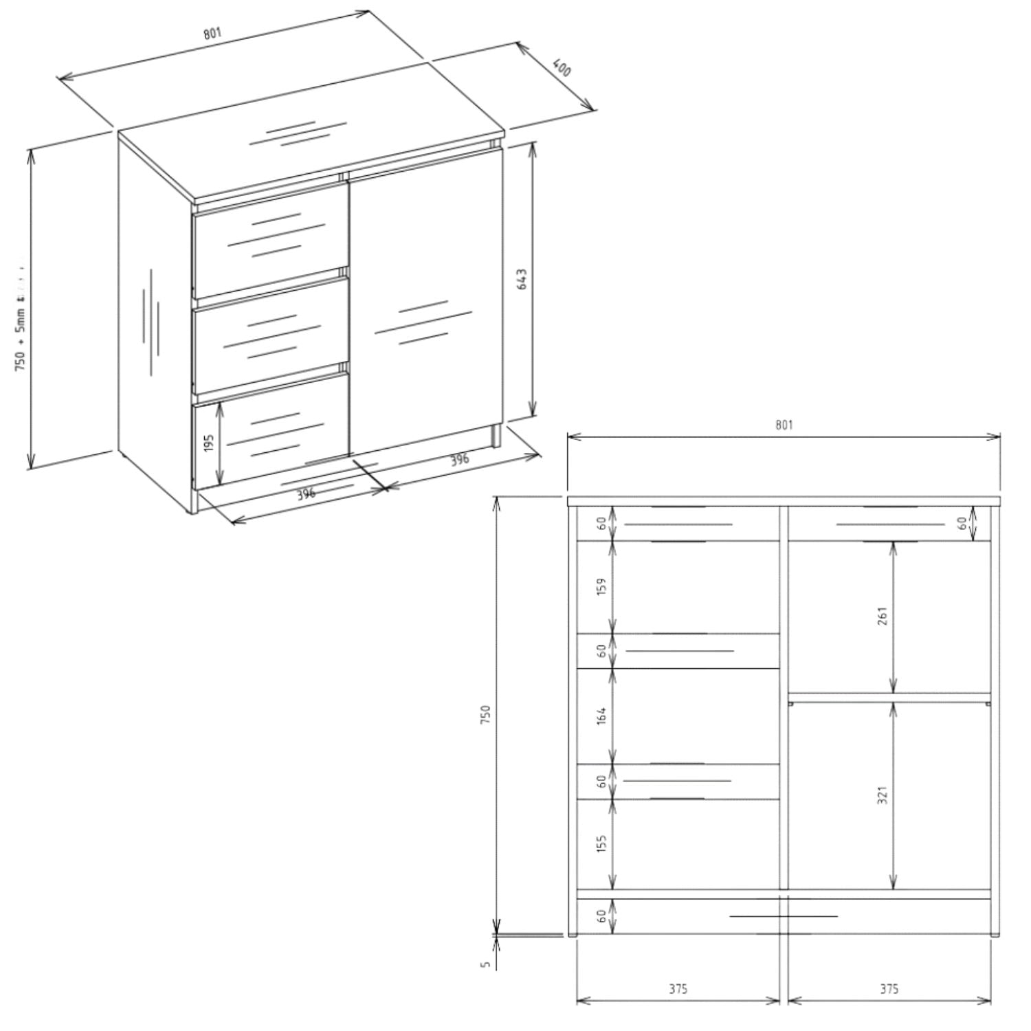 Die Kommode Milo vereint moderne Linienführung, zeitlose Eleganz und funktionale Aufteilung in einem vielseitigen Möbelstück. Mit einer Kombination aus einer Tür und drei geräumigen Schubladen bietet sie ausreichend Stauraum für Kleidung, Dokumente, Accessoires oder Alltagsgegenstände – perfekt für Schlafzimmer, Wohnzimmer, Flur oder Kinderzimmer.