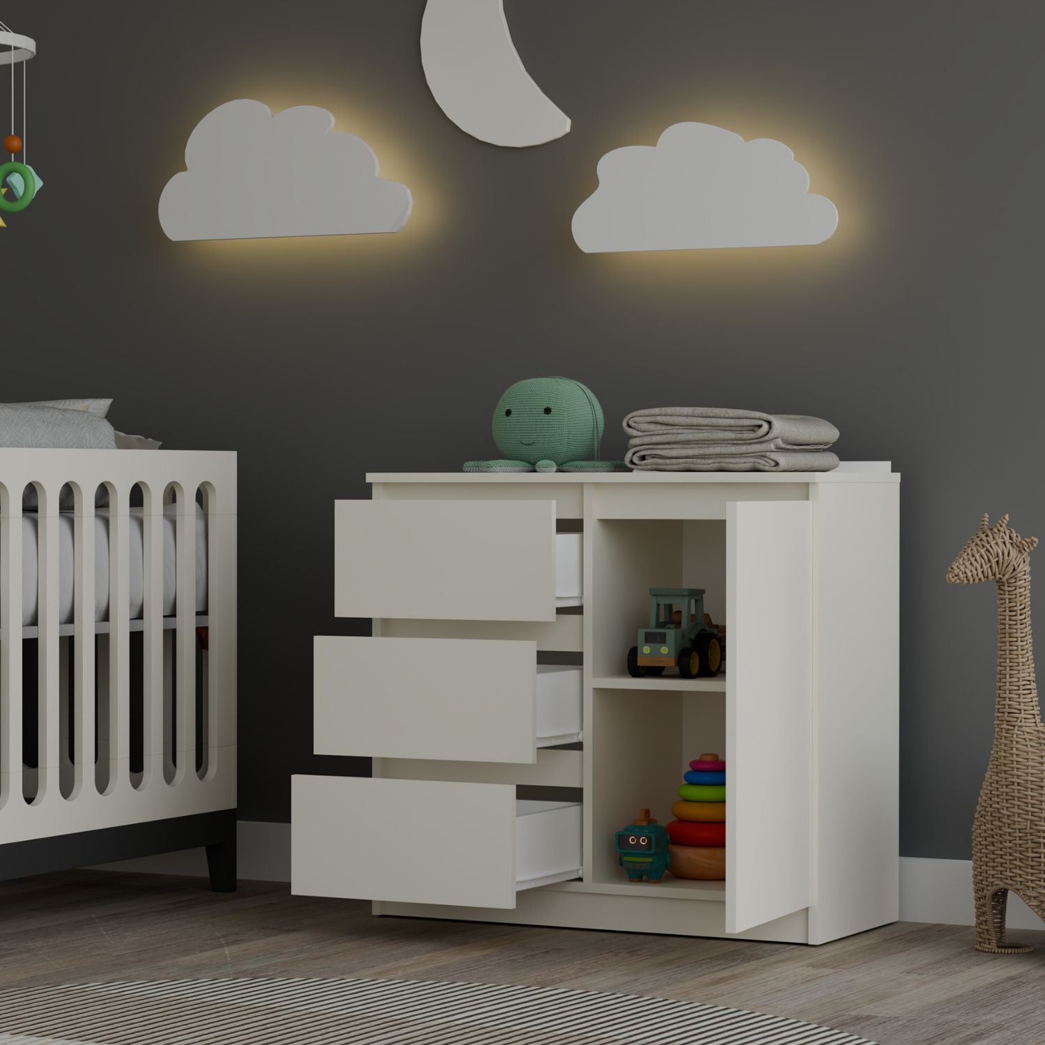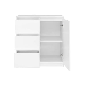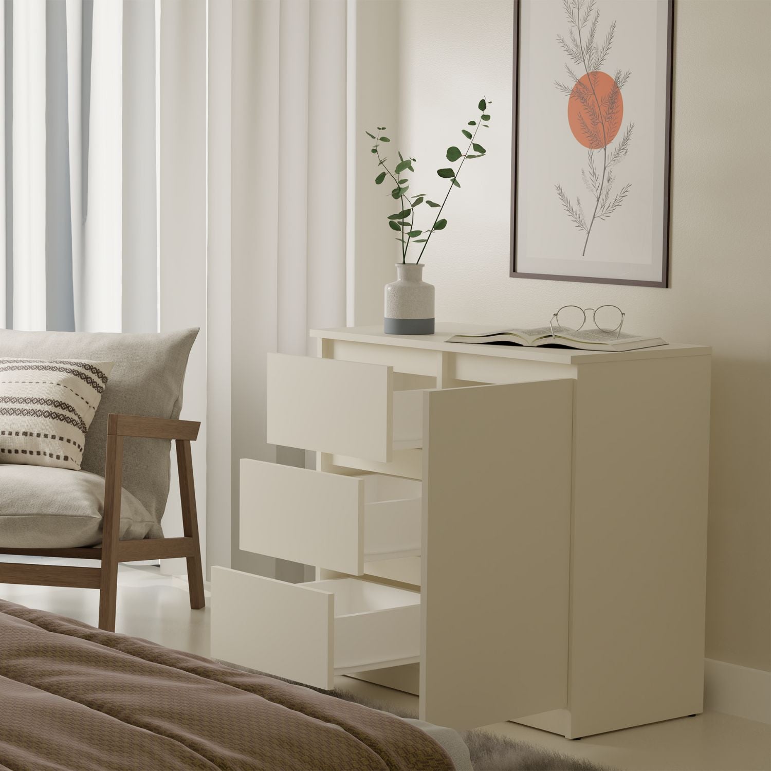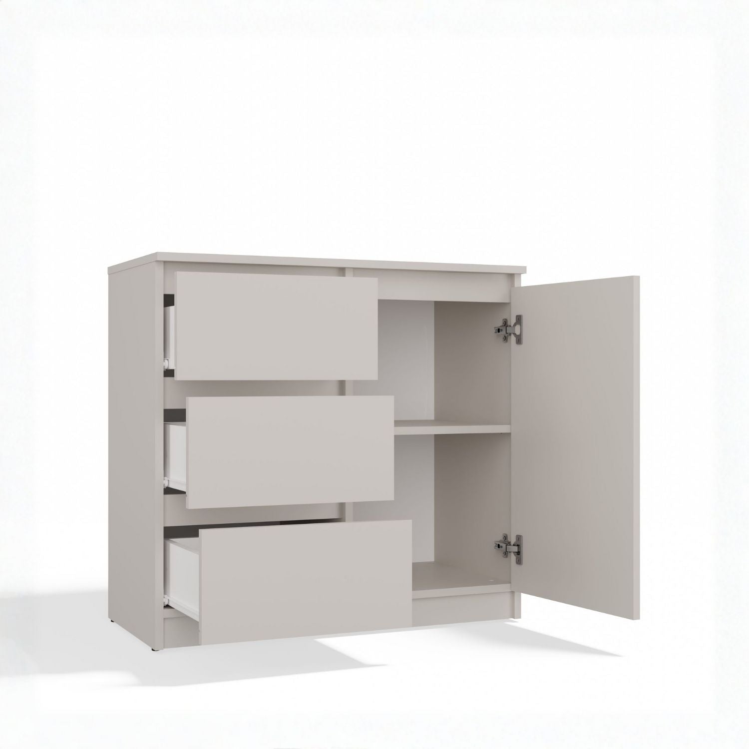 Die Kommode Milo ist ein modernes Stauraumwunder mit drei Schubladen und einer Tür – ideal für Wohnzimmer, Schlafzimmer oder Flur. Mit fünf attraktiven Farbvarianten und griffloser Front überzeugt sie durch stilvolles Design, robuste Materialien und praktische Aufteilung.